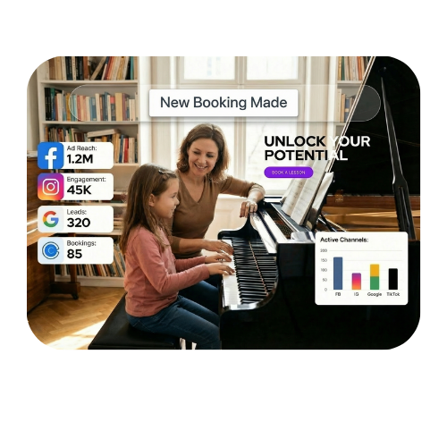 A landing page that converts, ad copy that speaks to parents, and a Google Ads campaign managed for your first 30 days. No marketing knowledge required.